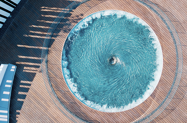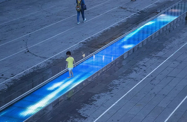 水本無形,它的物理特性讓它能輕易地跟隨容器而呈現不同的面貌。獨特的延展性使得水能呈現無以計數的不同效果。燈光的布置,介質的紋理,顏色和動態都能給水帶來無窮的變化。